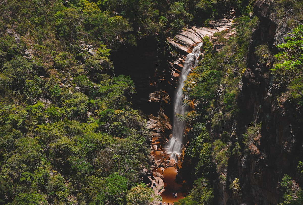 Odkryj bogactwo roślinności, która otacza wodospad, tworząc zielony dywan.